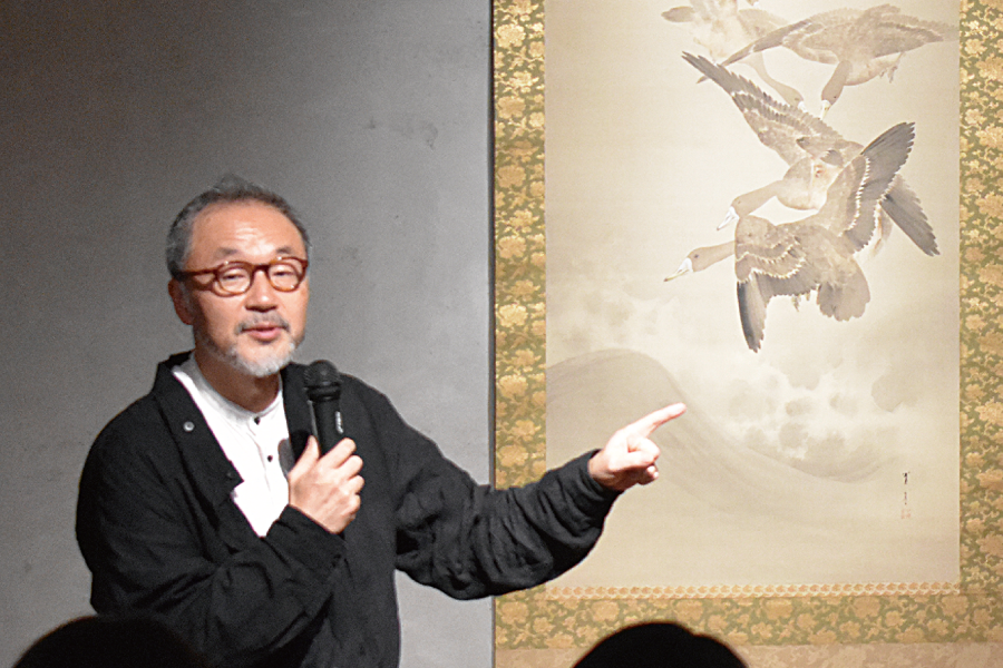 「SEITEIリターンズ‼︎渡邊省亭展」でのトークセッションの様子。(写真は泉屋博古館分館長の野地耕一郎氏)