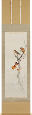 次は御舟のモズと見比べよう。こちらは描かれた対象がかなり異なるので比較がしにくい。省亭のモズは雄の成鳥だが、御舟のモズは巣立ち間近の雛だ。構図も状況も大きく異なるので比べられない。よってこの勝負では、羽毛の描写に焦点を当ててみる。御舟のモズはのっぺりしていて、羽毛の柔らかさや立体感はあまり感じられない。これは東山魁夷や平山郁夫など後に続く日本画家とも共通するが、日本絵画の伝統的な美意識に則り、敢えて平面的に描写しようとした結果であろう。一方で省亭のモズには羽毛の柔らかさや質感があり、西洋画が持つ立体性が省亭独自の技術で再現されている。こちらは日本絵画が持ち合わせていなかった新しい美意識に挑戦した結果と解釈できよう。やはり際どい勝負となったが、立体的に表現しようと試みた新規性を評価して、省亭のモズの勝ちとしたい。