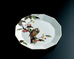 「色絵十二角皿 鵯と桜んぼ」1984年頃