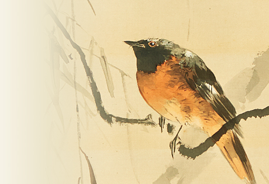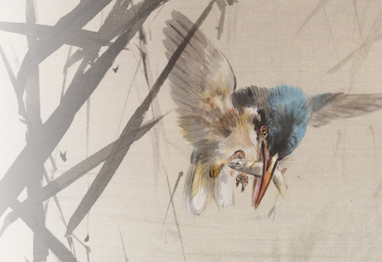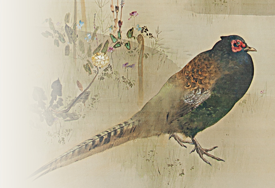 The birds Seitei paints are always precise, however, not many come as close to the real thing like this Baikal Teal. I think Seitei had a special fondness for the Baikal Teal and, as such, put extra energy into the making of this work. Perhaps the excitement of meeting a wild Baikal Teal outdoors inspired him to make the work as real as possible. Meeting this beautiful bird must have been a special memory, both, now and in the past.