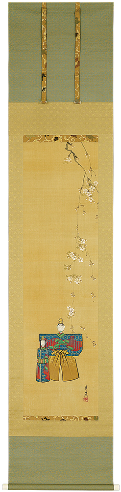 When we think of ‘hina dolls’ today, we imagine beautiful dolls sitting on red steps, but until the Edo period, it seems ‘tachi (standing) hina dolls’, like the ones in this work, were mainstream.