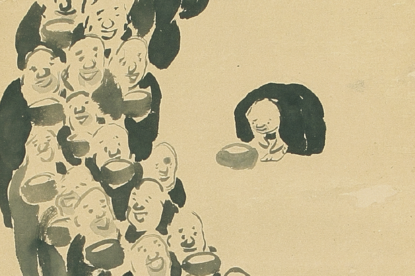 Rinpa artists are gifted in their ability to express motifs through a unique composition and a sophisticated, but minimal, amount of artistic labor. Whilst gold and silver leaves overwhelm the aesthetic of their work, the true ability of the Rinpa artist resides in the simple material of their ink paintings. In this event, we will reveal the often overlooked, Rinpa ink painting. For instance, the subtle but sophisticated “Cherry Blossoms” by Ogata Kenzan uses black ink and gentle strokes to render petals. In contrast, the endearing and animated expressions of Nakamura Hochu “Begging Monks” (exhibited late last year, at Hosomi Museum of Art’s special exhibition) excites much affection. This is an opportunity to experience another side to Rinpa- one that goes beyond the glamor and shine of sophisticated compositions and painting techniques.
