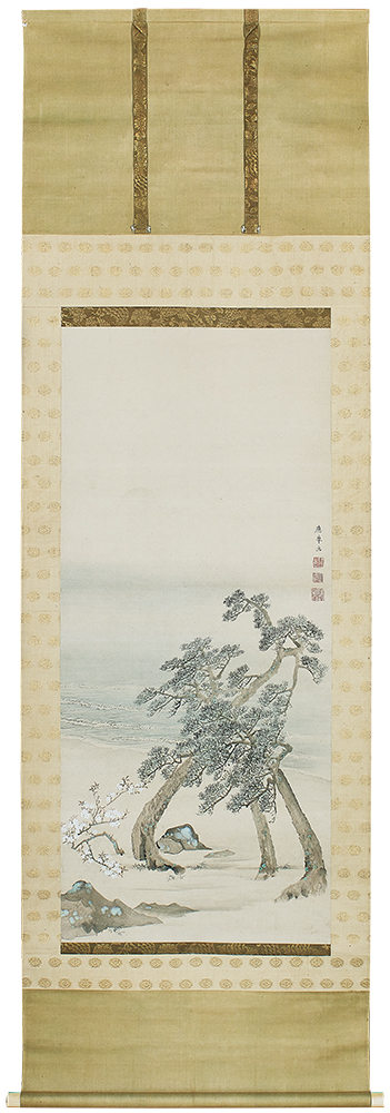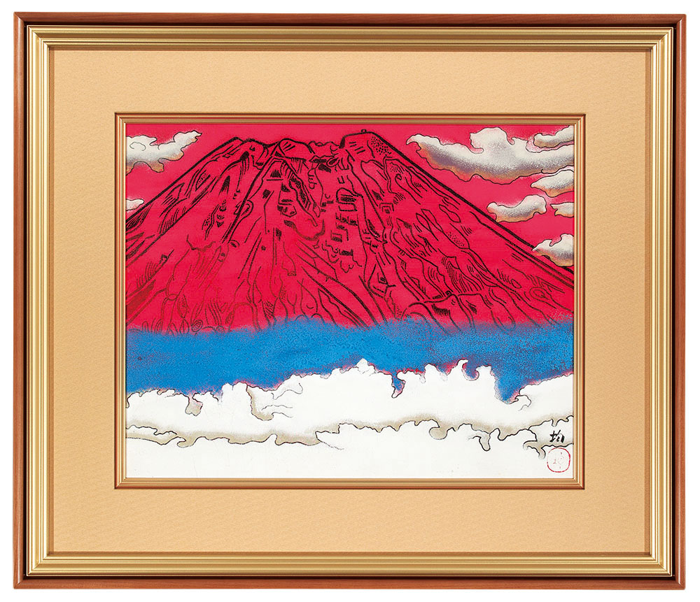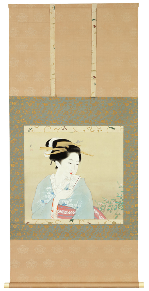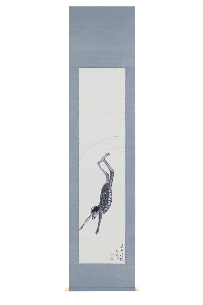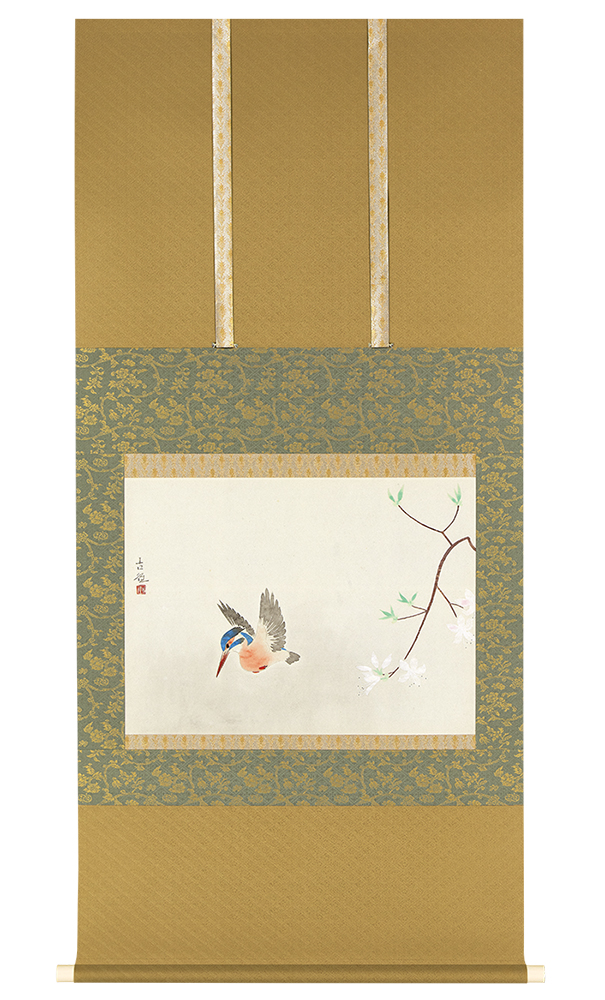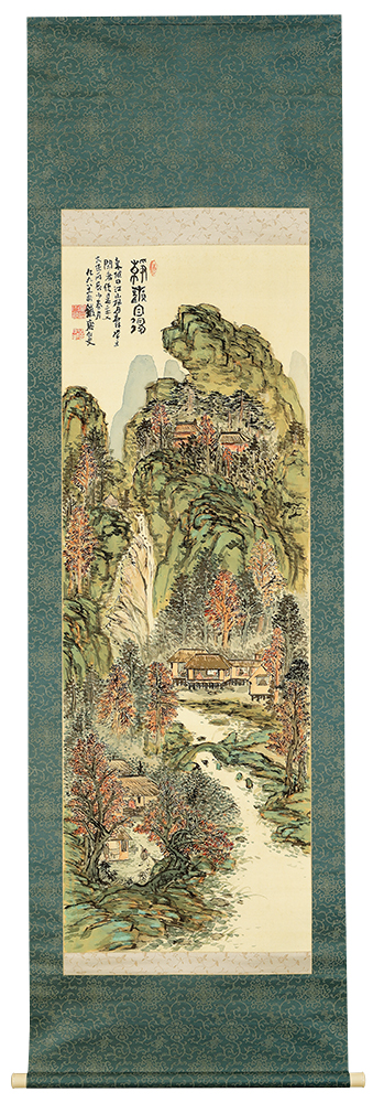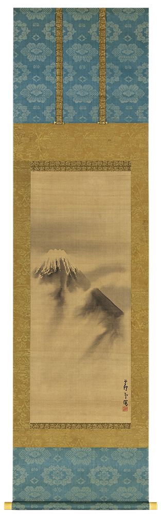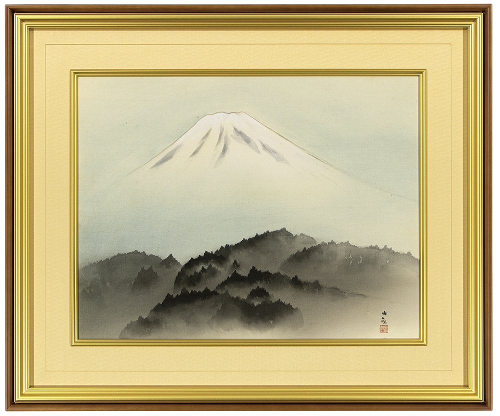 He began painting in his forties and mastered techniques that created a soft, blurred effect through the use of brushstrokes, often employing fudekusa (Japanese sedge). In this work, he depicts a tranquil landscape where the sharpness of the trees and the freshness of the mountain air are conveyed through the texture of his brushwork.