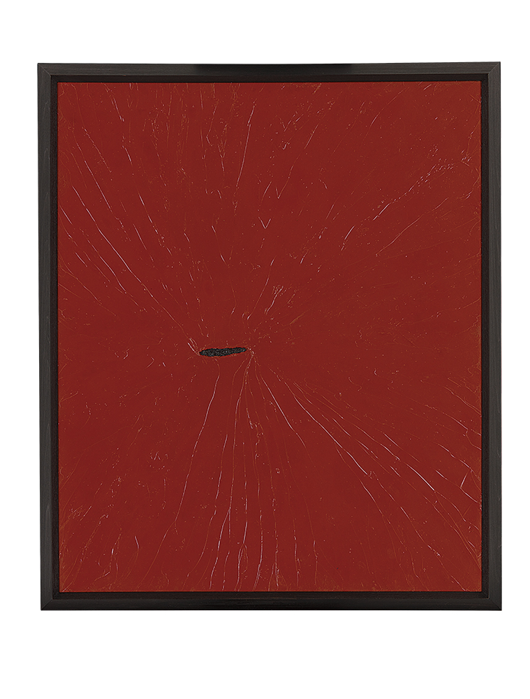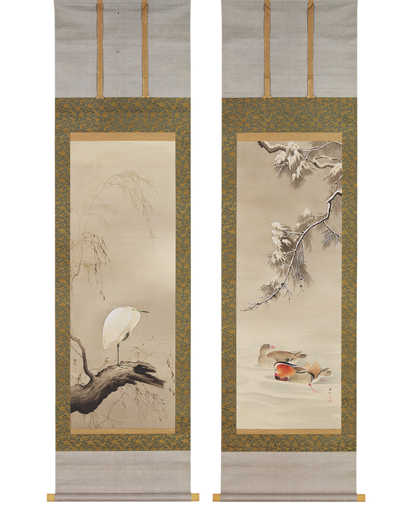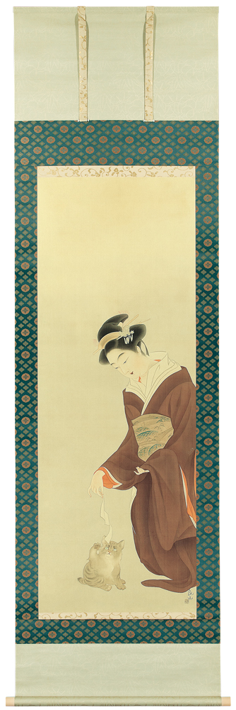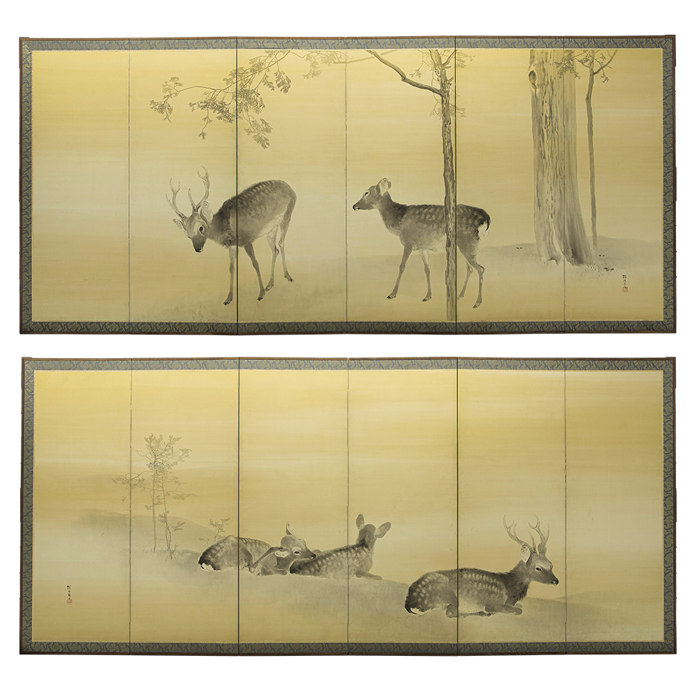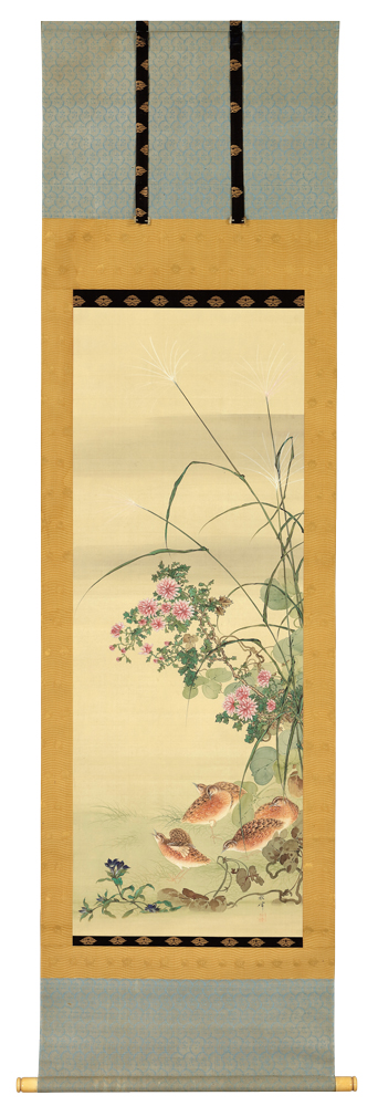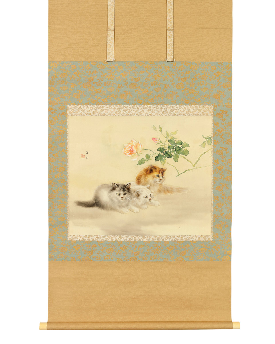 He began painting in his forties and mastered techniques that created a soft, blurred effect through the use of brushstrokes, often employing fudekusa (Japanese sedge). In this work, he depicts a tranquil landscape where the sharpness of the trees and the freshness of the mountain air are conveyed through the texture of his brushwork.