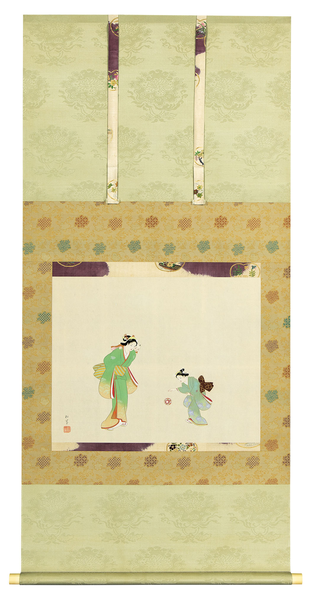 今回の「美祭 撰」の注目作品は、有元利夫「海からの来訪」、藤田嗣治「猫を抱く少女」、横山大観「霊峰不二」、上村松園「初春」、円山應挙「狗児図」。その他にも、尾形光琳、池大雅などの近世絵画、一休宗純、大愚良寛などの墨跡、平櫛田中の木彫作品など、珠玉の作品を取り揃えております。選び抜かれた作品に触れて、この秋も香しい日本美術の世界を堪能してください。