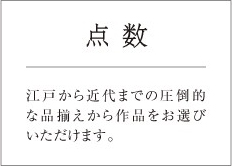 年2回、春と秋に開催しております展示会「美祭」は、今年の春で15回目を数えることとなりました。主に江戸期から現代までの日本画、油彩画、墨 跡、陶芸など総数450点を超す作品を取り揃え、皆様をお迎えします。中でも注目すべきは、伊藤若冲、円山應挙、橋本雅邦、白隠慧鶴、夏目漱石、 上村松園、藤島武二などの優品です。また、より多くの方々に日本美術を身近に感じていただけるよう、毎回趣向を凝らした図録を制作、発行していま す。額装の作品はさることながら、現代的なデザインのギャラリーに掛けられた掛軸は、床の間に掛けられたそれとはまた違った表情を見せてくれま す。ガラス越しでなく、直に作品と向き合うことのできる数少ない機会です。ぜひご来場ください。