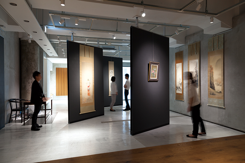そこでは江戸期から現代までの日本画、油彩画、墨跡などの書画を中心とした総数約450点の作品を取り揃え、皆さまをお迎え致します。