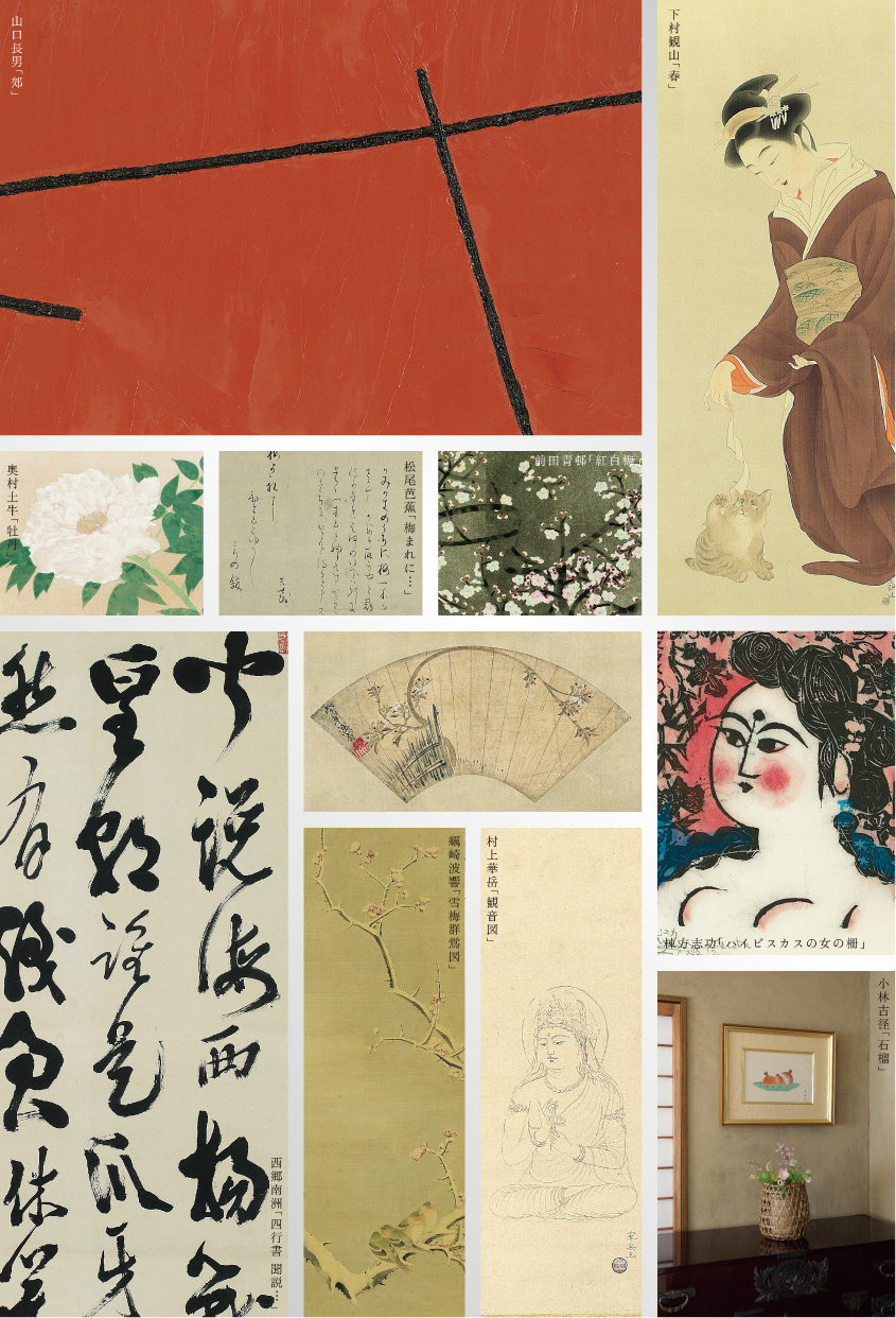 伊藤若冲・酒井抱一・柴田是真・与謝蕪村・円山應挙・西郷南洲・夏目漱石・樋口一葉・正岡子規・松尾芭蕉・棟方志功・伊東深水・荻須高徳・下村観山・横山大観 他多数