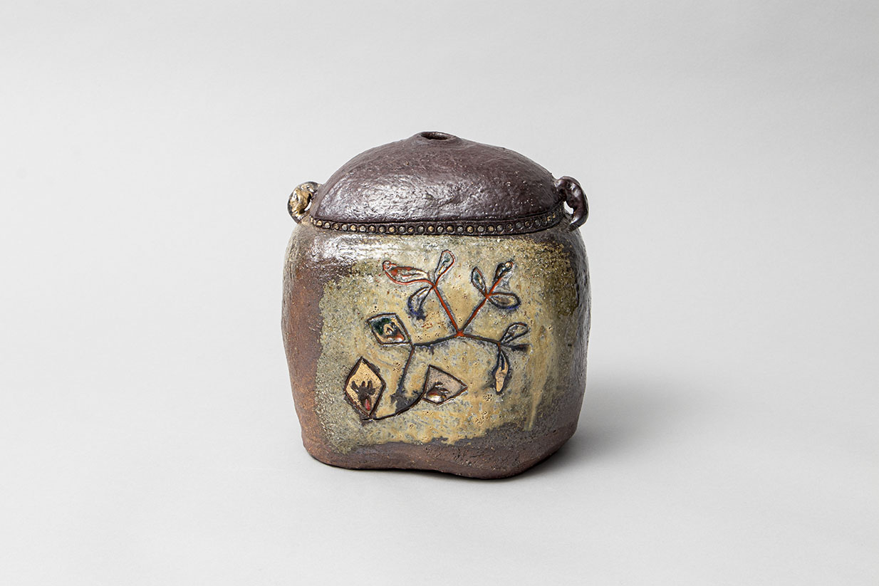 安人の桃山時代の茶陶に対する探究心と作陶技術の追求は、単なる古典の継承にとどまらず、備前焼の新たな可能性を導き出しました。赤・青・黄・緑と豊かな色彩が施された安倍安人の代表的シリーズ「彩色備前」は、安人が「三点展開」と「焼おとし」と呼ぶ独自の技法によって、生み出されています。桃山茶陶を現代陶芸へと昇華した安人の作品は、国内外でも高く評価され、アメリカのメトロポリタン美術館や台湾国立故宮博物院にも収蔵されています。