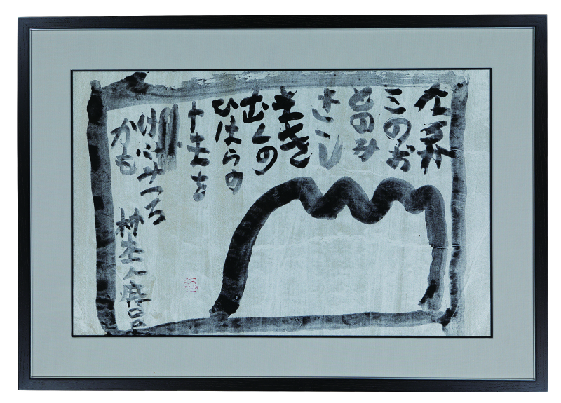 書道においては、先人たちの研鑽が結実した古典を手本とし美しい筆跡を学ぶこと、それは人格の表現であるともされ、格調高い筆跡こそが正統とされています。対して、それらを土台とし、新たに開拓された新しい書道の形は前衛書道と呼ばれています。これらは墨象とも呼ばれ、視覚に訴える芸術として純粋に造型・線・墨色・余白などの美しさを主張するものです。文字の意味を超越し、その造形的な美しさをある意味絵画的手法によって表現しようとするものです。そんなスリリングな書の姿をぜひ味わってみてください。