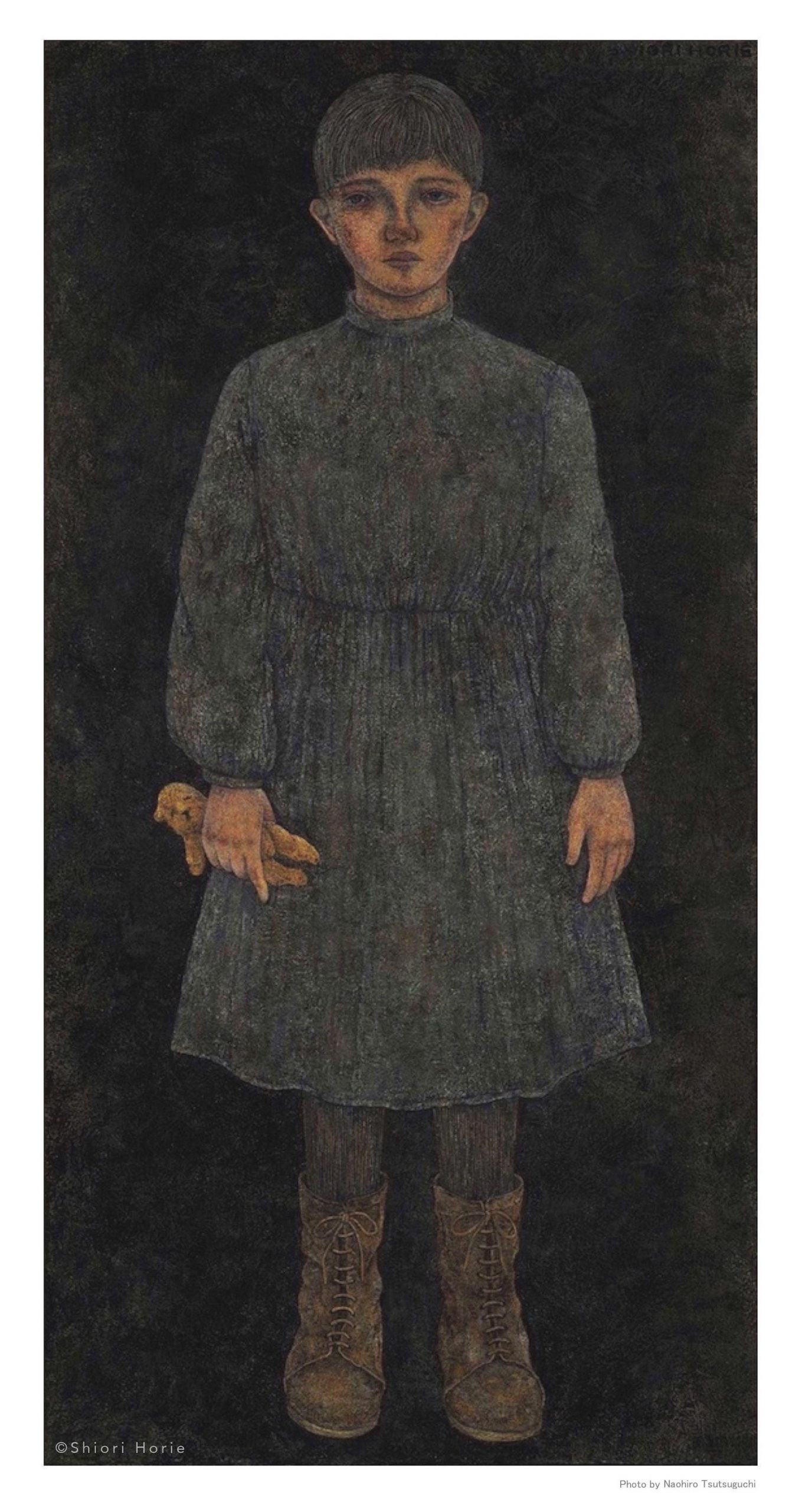堀江栞は、美術大学で日本画を学び、その伝統や技法を踏襲しながら独自のスタイルを確立してきました。感受性が強く繊細な彼女の描く画面には、一見静謐な世界観が拡がりを見せますが、その内面の精気は強く私達に訴えかけてきます。