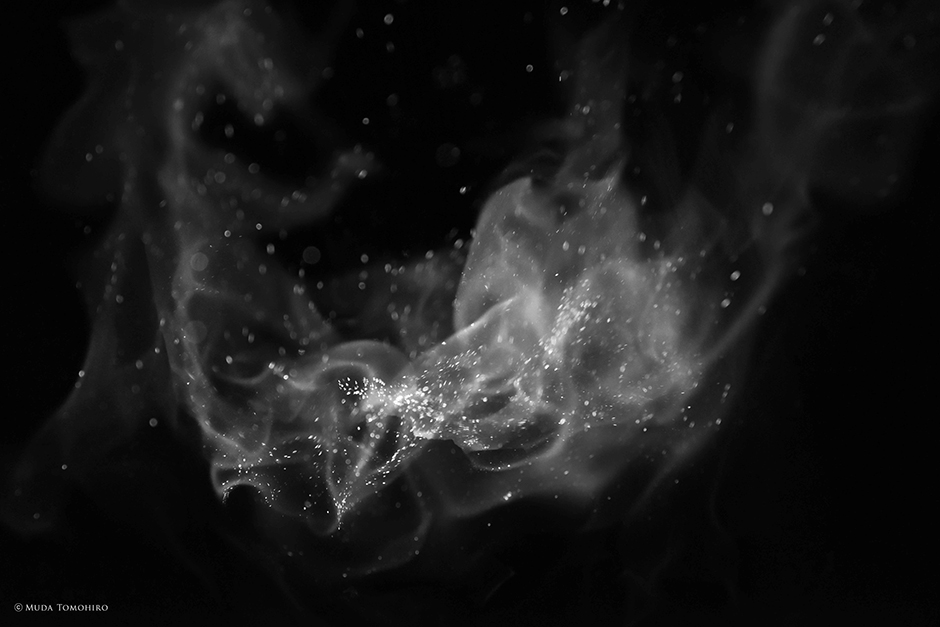 六田氏は自らの言葉でこう記しています。「カメラをにぎる時、私は一個の受信機になる。日常の意識を下げて五感を開き、被写体が発する波動を感知して、それに自らをシンクロさせることができたとき、止めどなく変化し続けるそれら現象の世界の内に隠された「宇宙の秘密のかけら」が、向こうのほうから写り込んできてくれる。そう信じて、シャッターを押し続ける。」