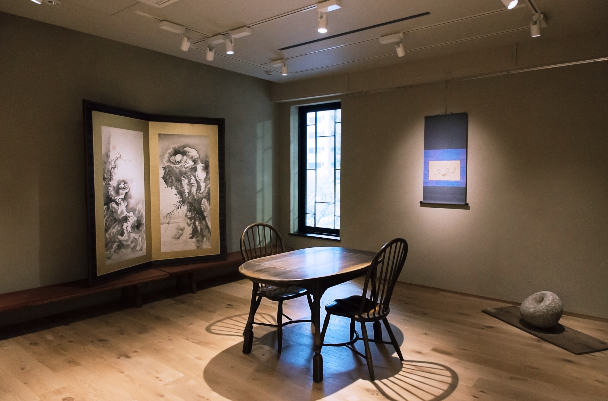 1階はコンクリート打ちっぱなしの現代的なスペース、2階は茶室を備えた和のスペースとなっており、日本美術を多彩な空間でお楽しみいただけます。
